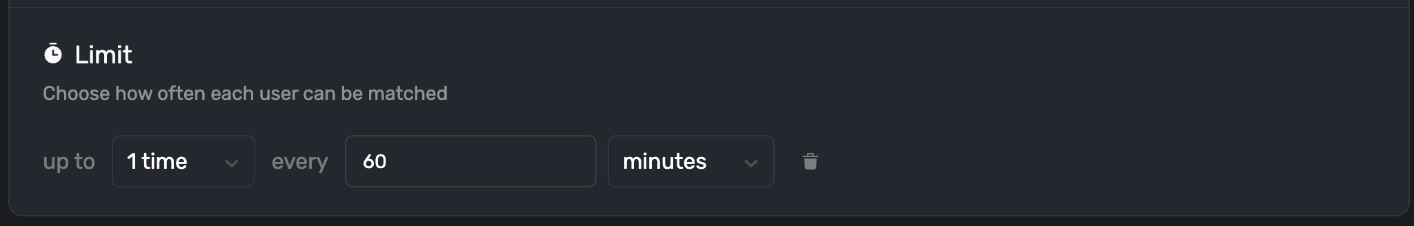 You can also add a limit to how often a rule should trigger. This allows you to say "show this once per day" or "show this once per week". It allows you to balance between number of paywall impressions (which increase conversions) with the potential impact on retention if you show the paywall too often.